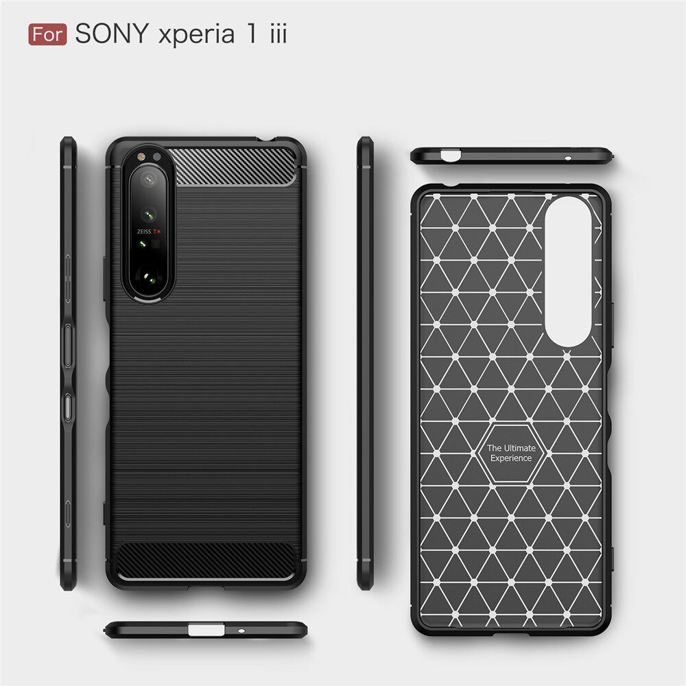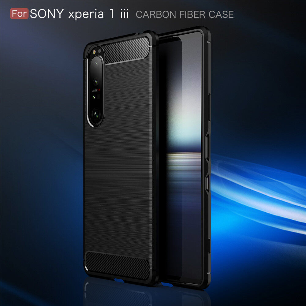 Lenuo for Sony Xperia 1 III / 10 III / 10 II Case - Carbon Fiber Silicone Brushed Cell Phone TPU Back Cover