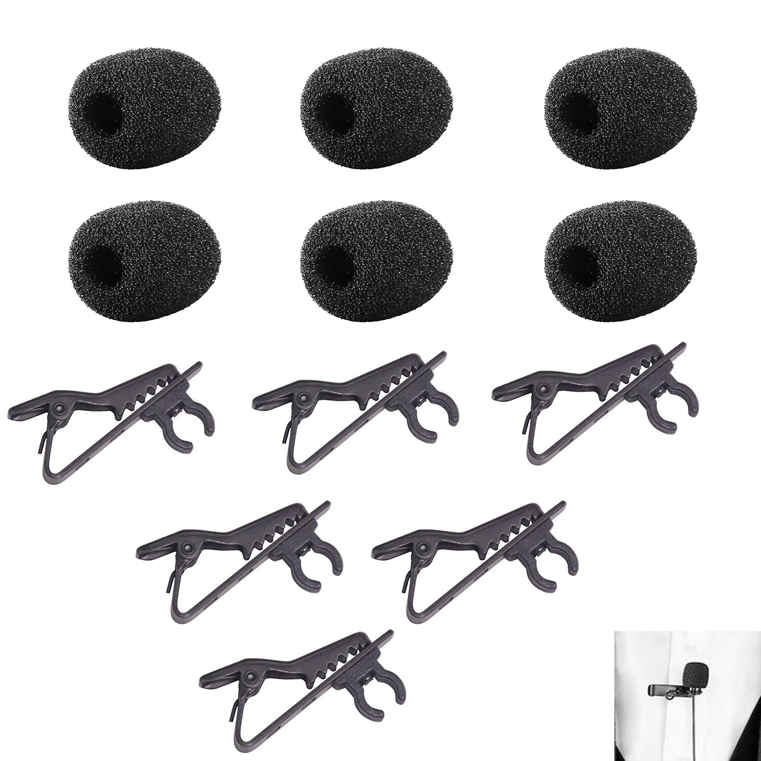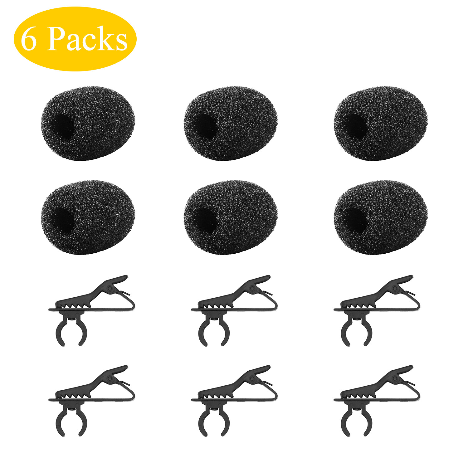 (6 packs) Foam Windscreen & Lapel Clips, BOYA Microphone Replacement Kit for Lapel Lavalier Microphone, Lav Microphone Accessories