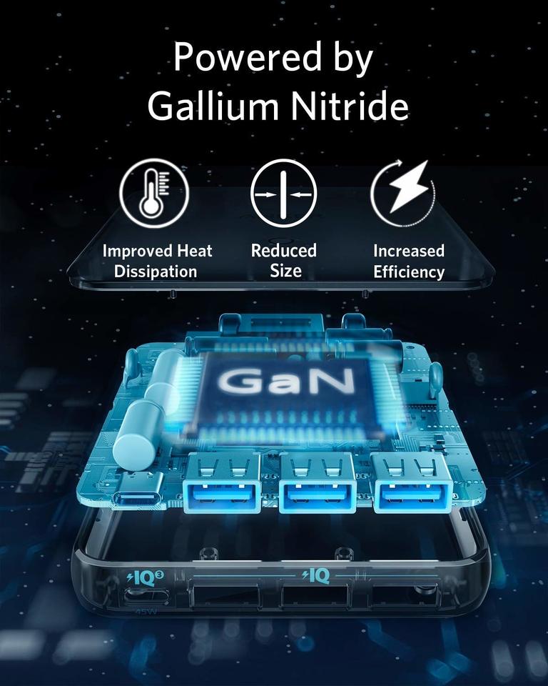 PIQ 3.0 (USB-C Port): 5V ⎓ 2.4A / 9V ⎓ 3A / 15V ⎓ 3A / 20V ⎓ 2.25A; USB-A Port: 5V ⎓ 4A (2.4A Max Per Port)
