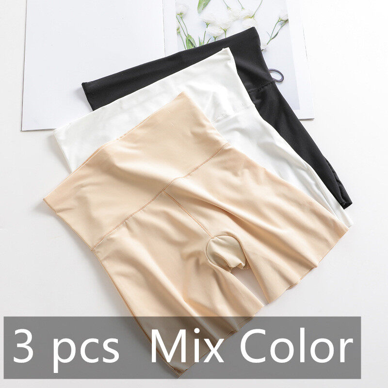 Yingbao L-4XL 3pcs Ice Silk Safety Pants for Women Seamless Stretch Summer Big Size High Waist Ladies Shorts Plus Size