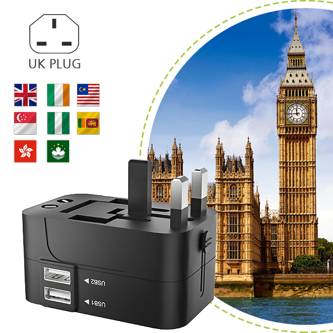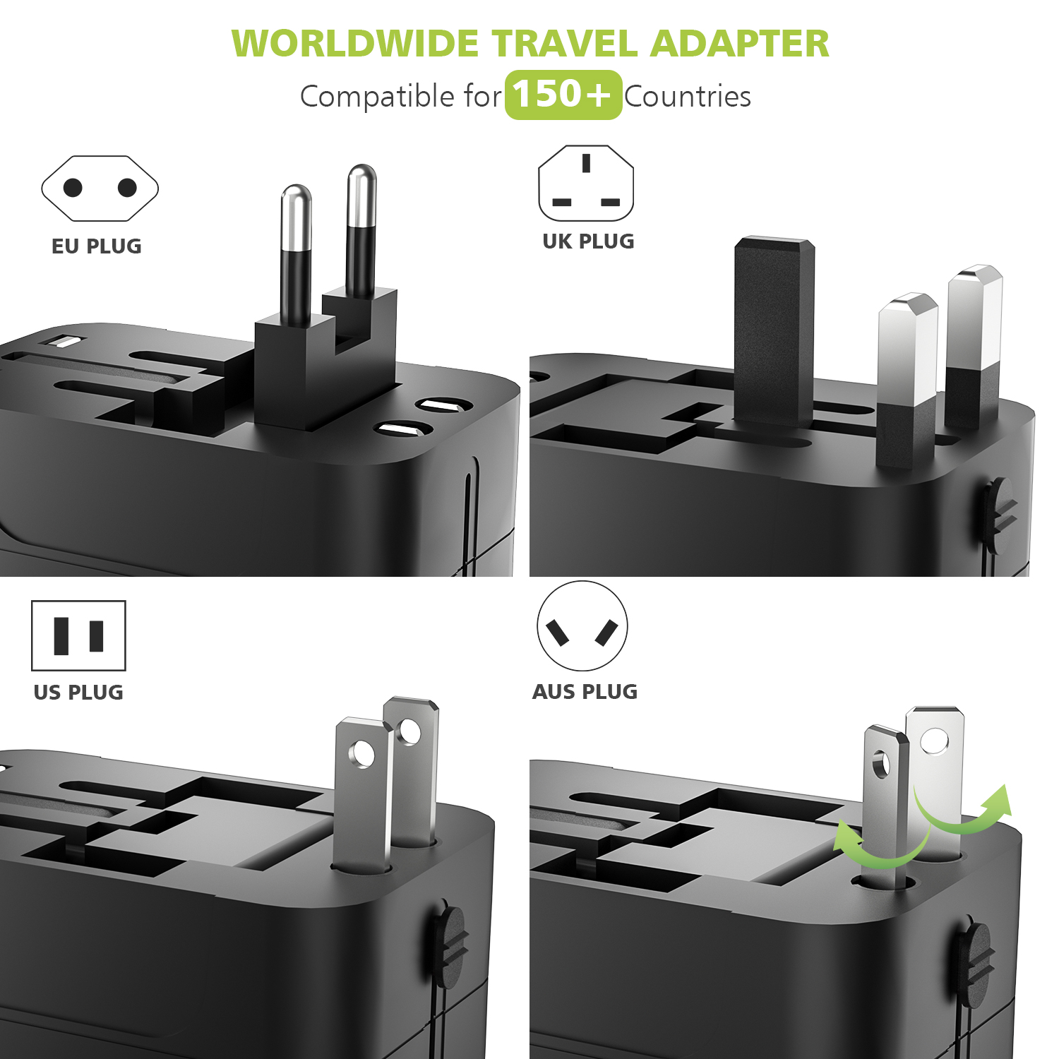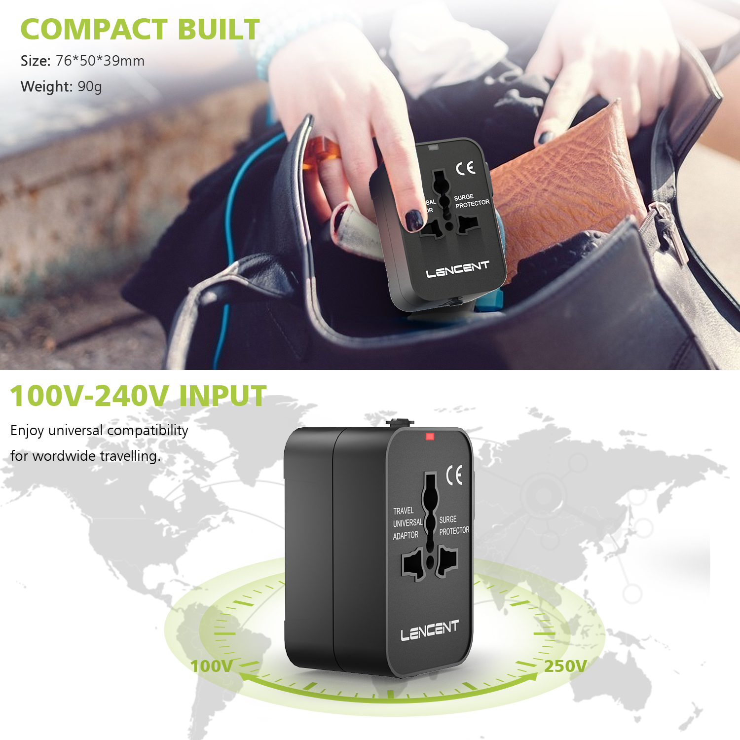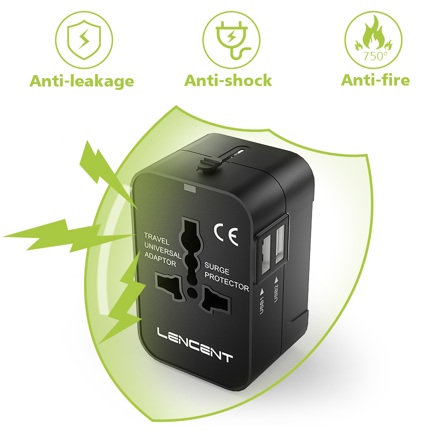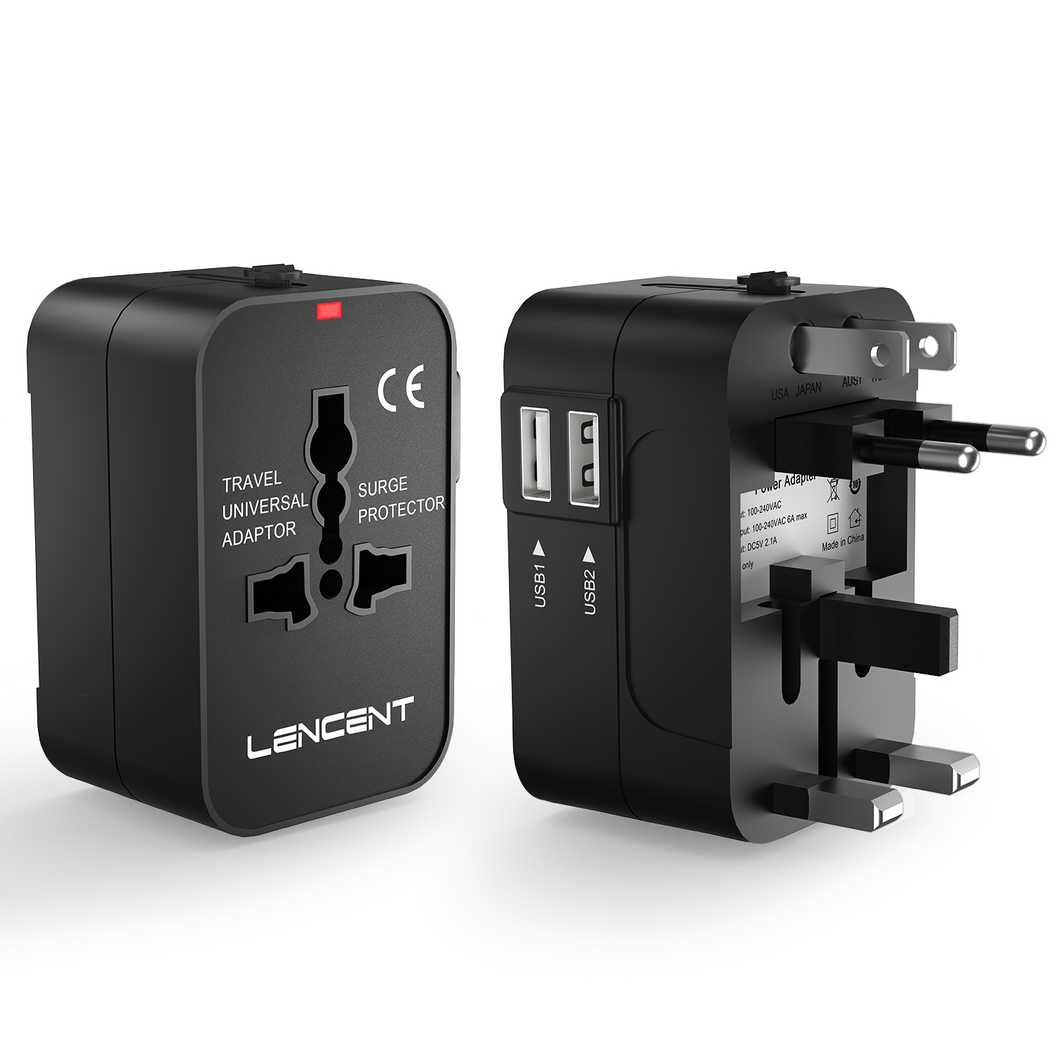 LENCENT Universal Travel Adapter Power Adapter with Singapore/USA/EU/AUS Worldwide Travel Plug 2 USB Charging Ports International Wall Adapter for iPhone iPad Android Phones Tablets and More Multi Plu