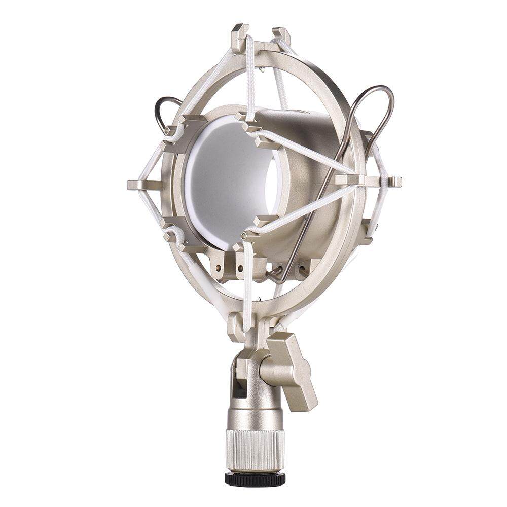 Features: Plastic shock mount for condenser microphone with 43-46mm diameter.(Please verify your mic size before buying) Can isolate most studio condenser microphone from physical vibration, floor and stand noise, making your singing more clear. The clamp interior is covered with soft foam to protect your microphone from damage. The mount adapter with 3/8" & 5/8" threads and features an angle adjustment, suitable for most mic boom and flexible to use. Ideal for on-line broadcasting, studio music recording, network singing, etcSpecifications: Color: Black/ Golden(optional) Material: Plastic Item Weight: 73g / 2.6ozNote: The microphone and microphone stand showed in the picture are not included.