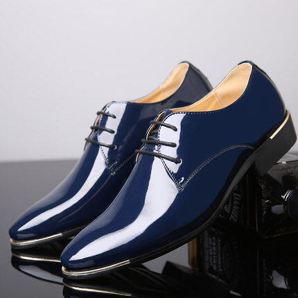 Men Plus Size Pointed Toe Bright Patent Leather Shoes