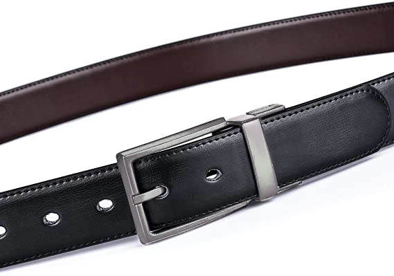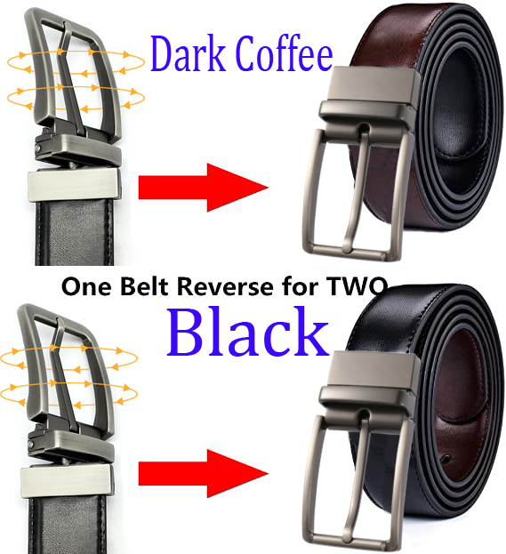 COWATHER Reversible Prong Casual Belt for Men with Genuine Leather 1.3" Wide Classic Everyday Sports Belts with Alloy Rotated Buckle. One Belt Rotated Double-sided 2 Colors to wear