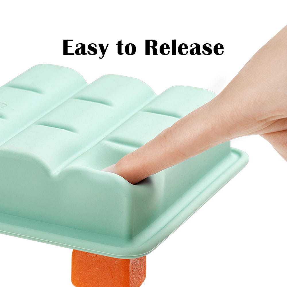 FOOD GRADE SILICONE - Silicone is flexible and naturally non-stick. Pop one portion of food out at a time and save the rest for later! It’s super easy to remove food from the tray. Say goodbye to prying baby food out of your tray with a knife. And no more trays that crack after a few uses. Plus, it’s dishwasher safe and boil-proof for quick and easy cleanup!