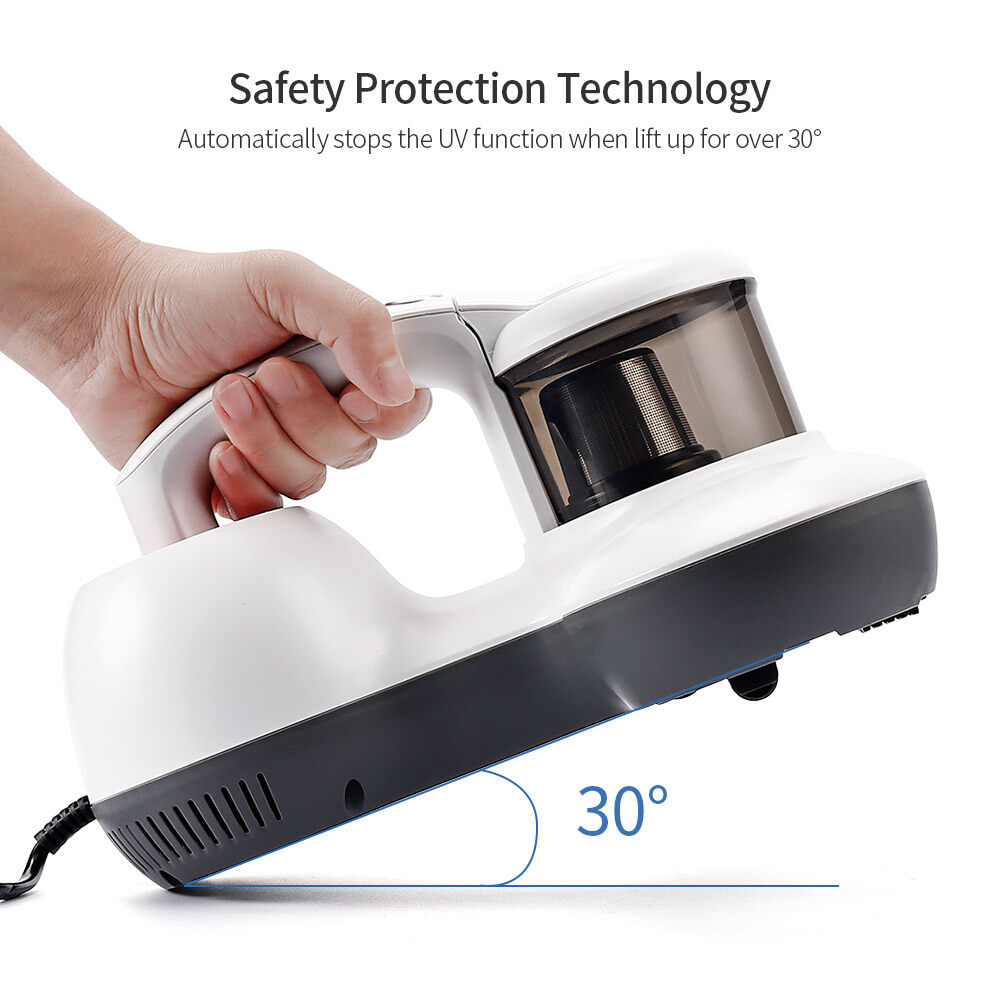 3. The UV light automatically stops working when lift up over 30 degree or away from the cleaning surface, avoid direct exposure and damage to human skin