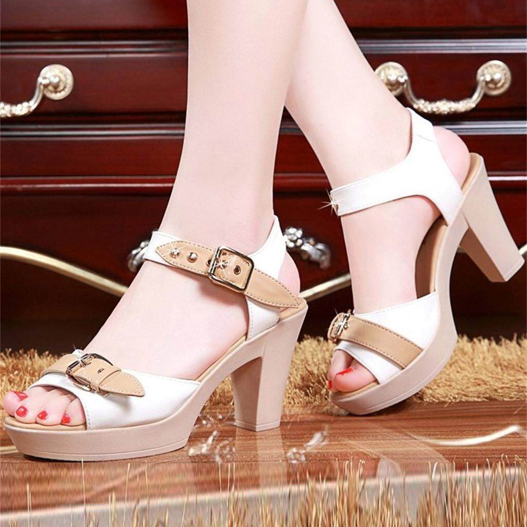 Carolane Ladies Shoes Ladies Roman Fish Mouth With Thick Heel Sandals Buckle High Heel Wild Sandals