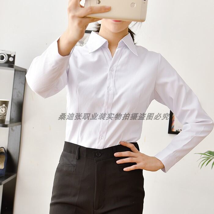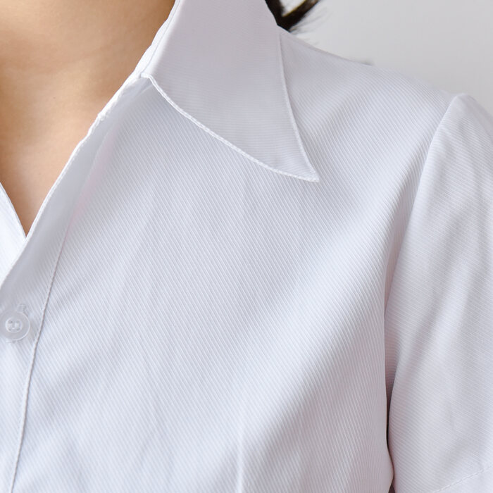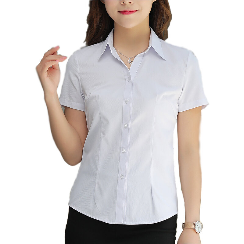 White Shirt Women's Short Sleeve Business Wear Formal Wear Work Clothes Bank White Collar Waist Hugging V-neck Shirt Half Sleeve Twill Cotton OL