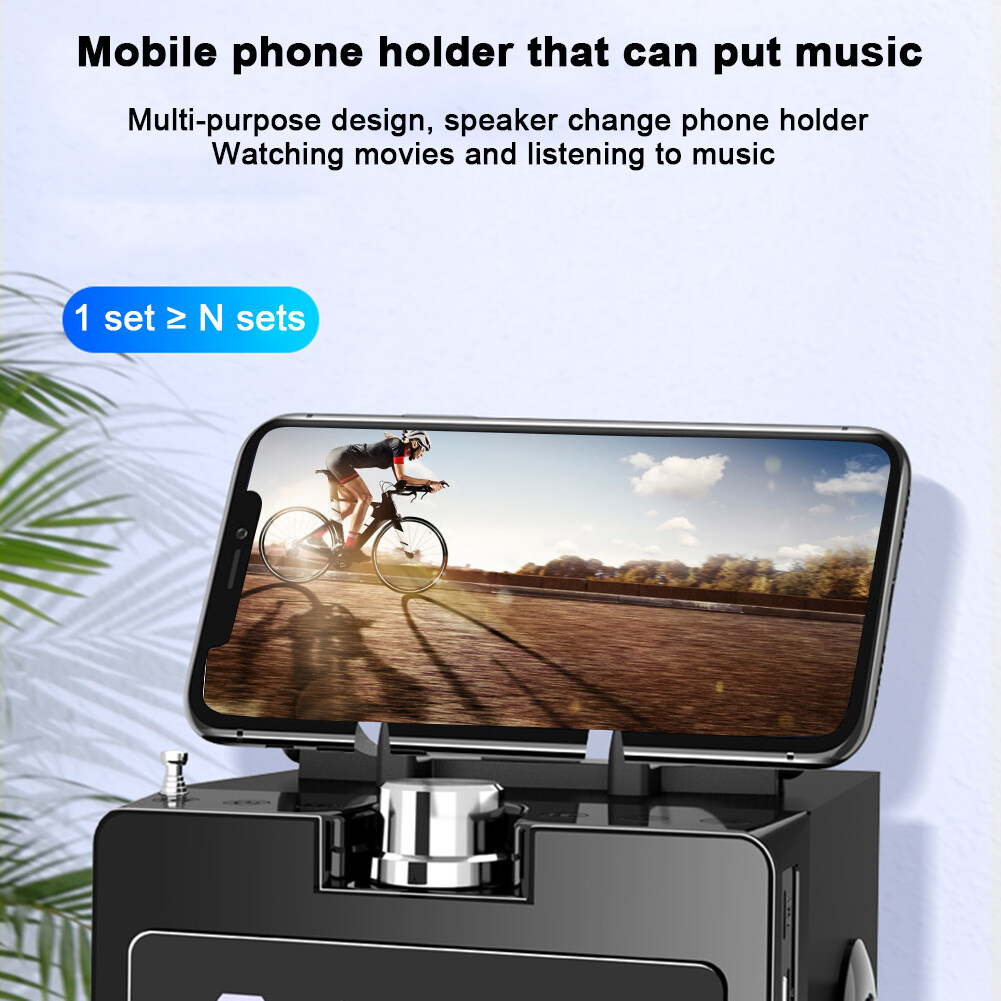 4.Interestingfeatures:Thetopofthisportablespeakerhasahand-heldpulltabandastandthatcansupportthestandingofthephone,tablet,etc.Thesubwooferdesignwillbringgoodresultstotheatmosphere.Suitableforparties,dances,familygatheringsandmanyotheroccasions.