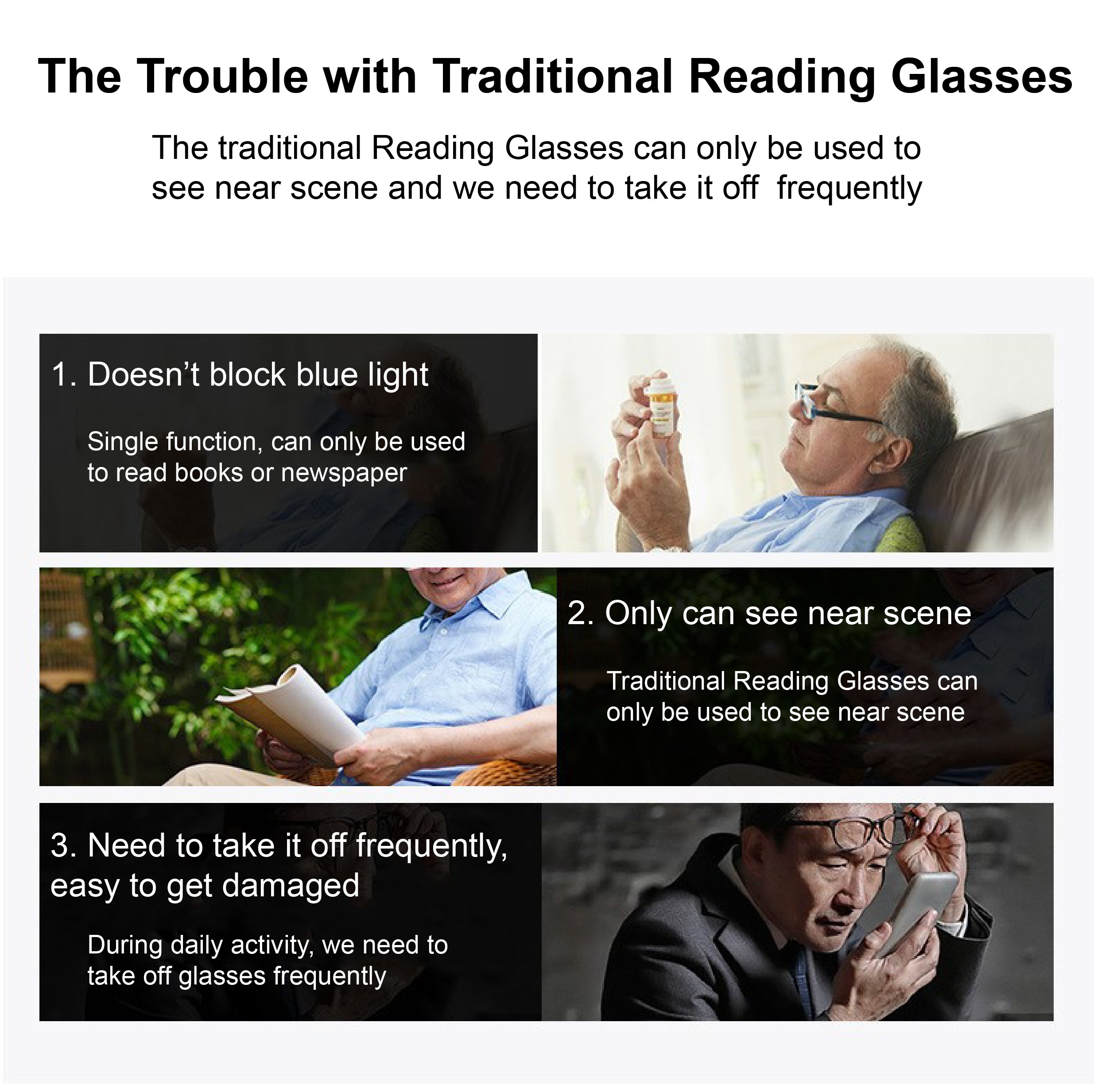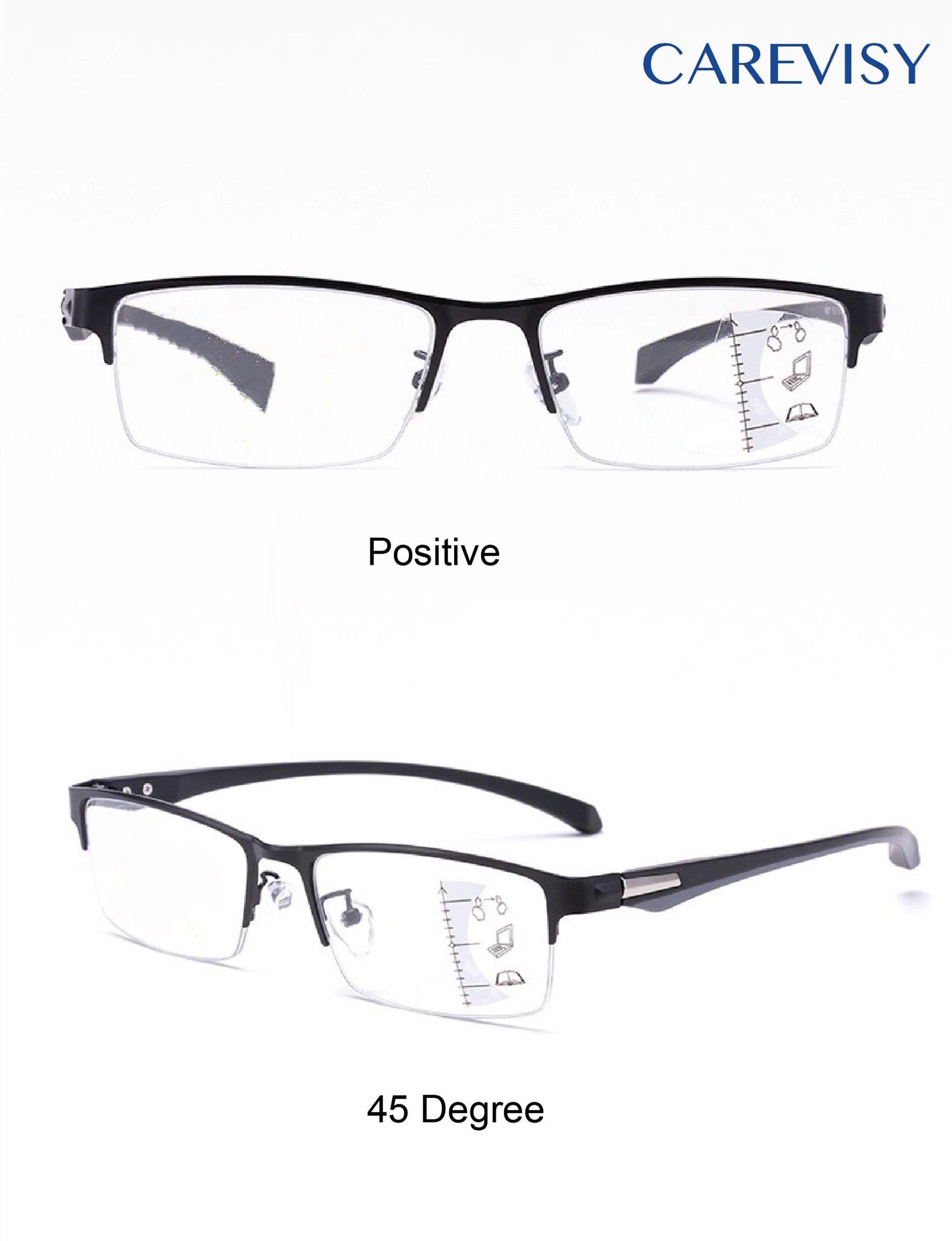 (Gift for parents) CAREVISY Classic Multifocal Progressive Reading Glasses Presbyopic Presbyopia Glasses Far Sighted Glasses Anti Blue Light Ray Spectacles for Adults Men Women C6001