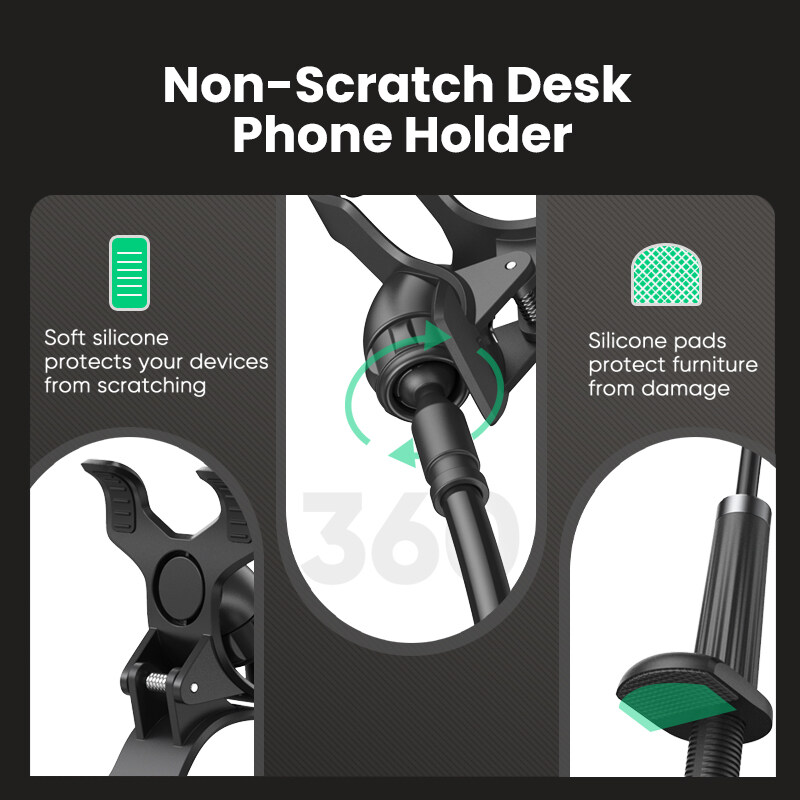 UGREEN Gooseneck Mobile Phone Clip Long Arm Holder Clamp Mount for SAMSUNG S22+/iPhone 13 Pro Max/OPPO Reno 3/Huawei P50 Flexible Bed Desk Table Clip Bracket for Phone 4.0-7.2 Incher