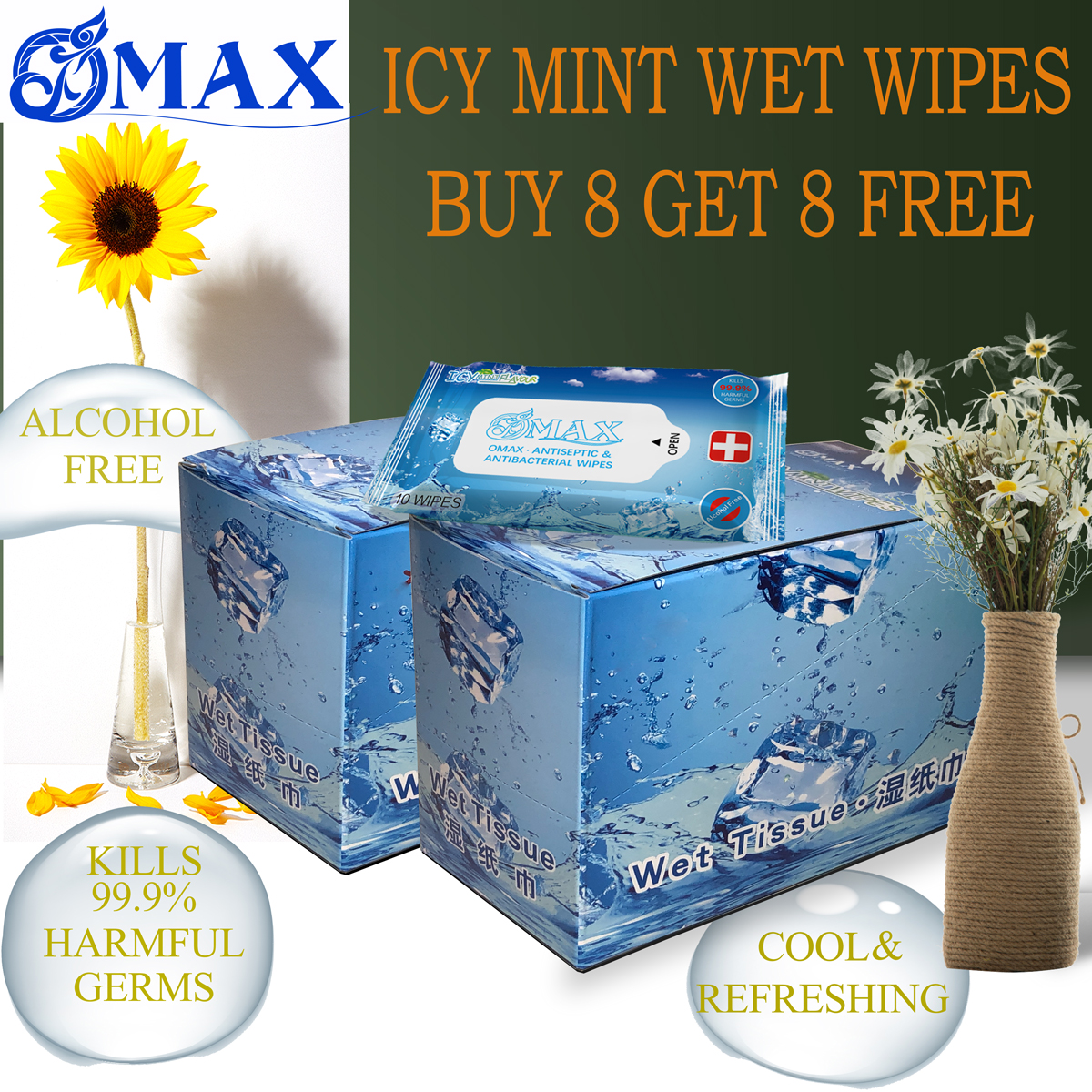 OMAX SG ⚡ ANTIBACTERIAL TISSUE ⚡ SPORTS , GYM , OUTDOOR, TRAVEL ,ICY MINT WET WIPES ,8~ 48 PACKS, LOCAL DELIVERY