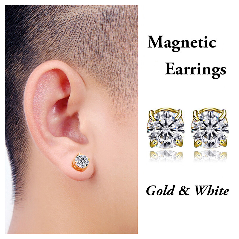 Bravego 1 Pair Diamond Magnetic Earrings Stainless Steel Non Piercing Ear Studs Magnet Clip Earrings