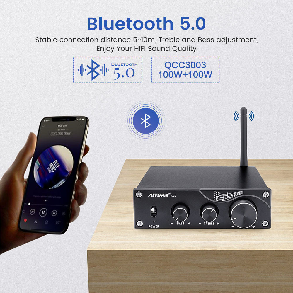 AIYIMA A05 100W TPA3221 NE5532 Subwoofer Amplifier Sound Amplifier Bluetooth 5.0 HIFI Power Amplifiers Stereo Amp Volume Control