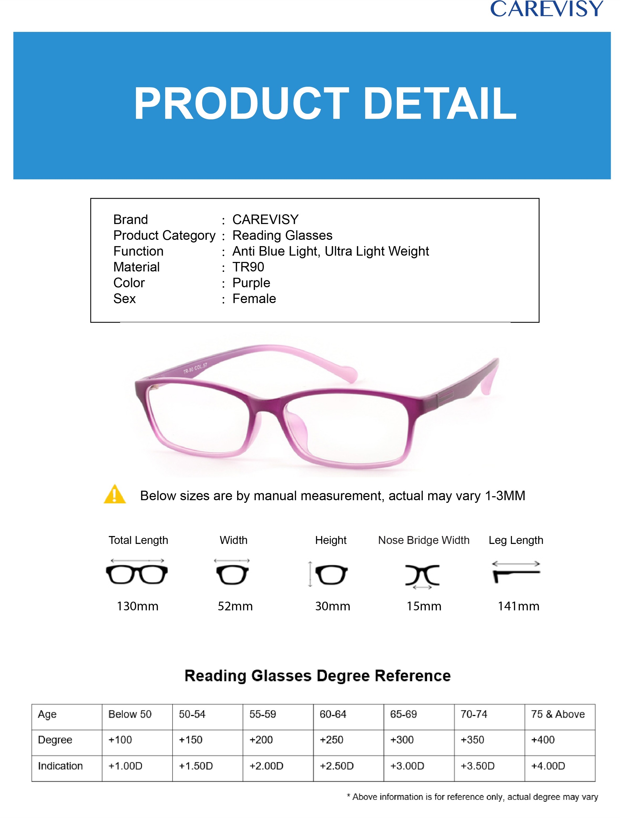 (Gift for parents) CAREVISY TR90 Reading Glasses Presbyopic Presbyopia Glasses Far Sighted Glasses Anti Blue Light Ray Spectacles for Adults Women C6007