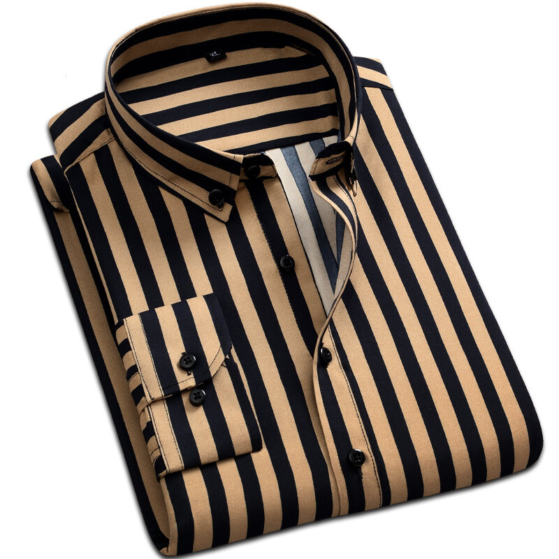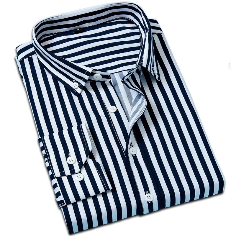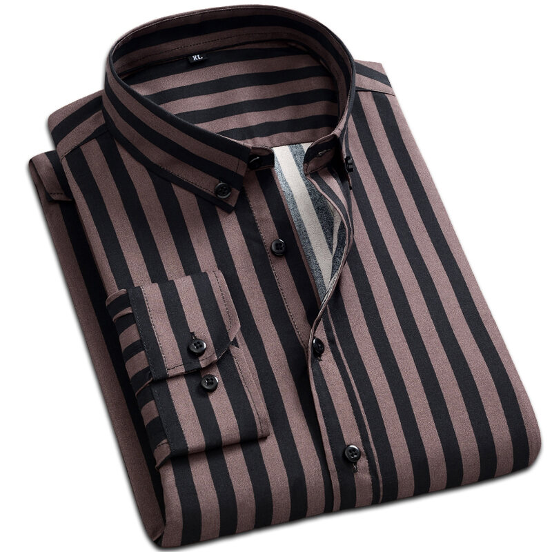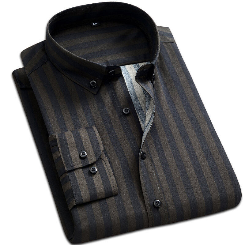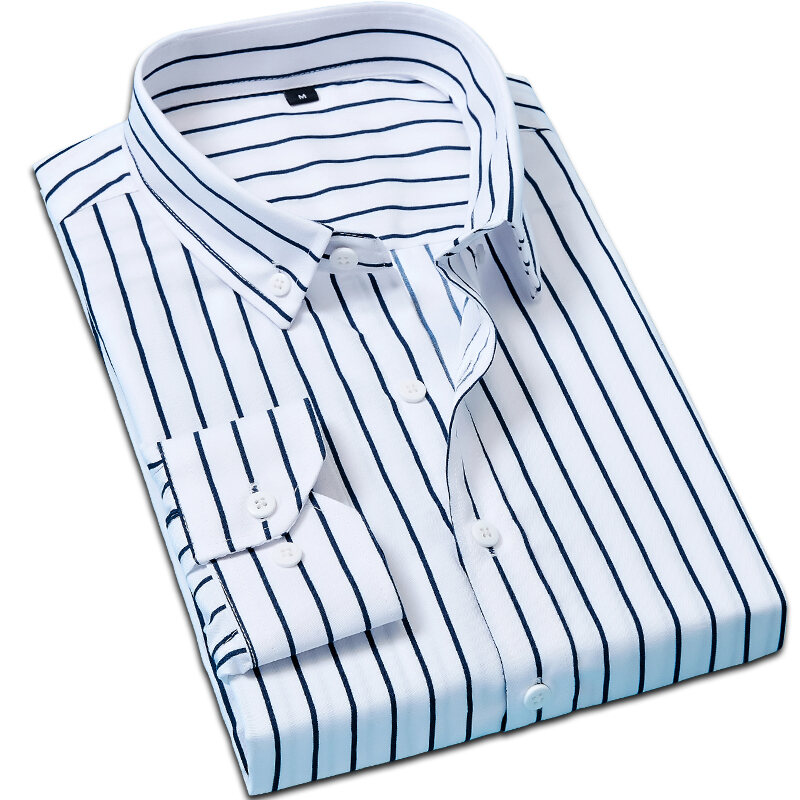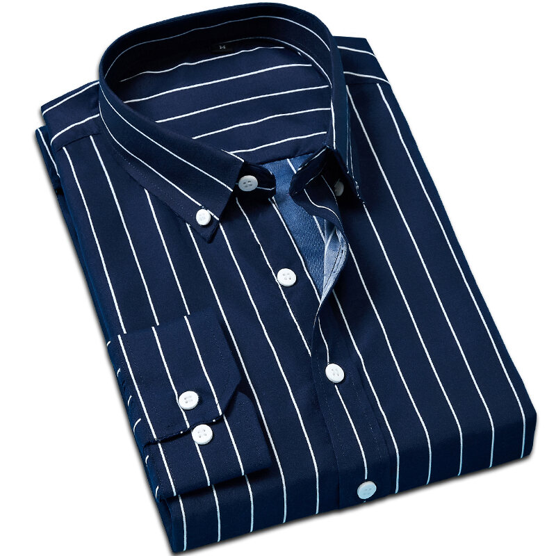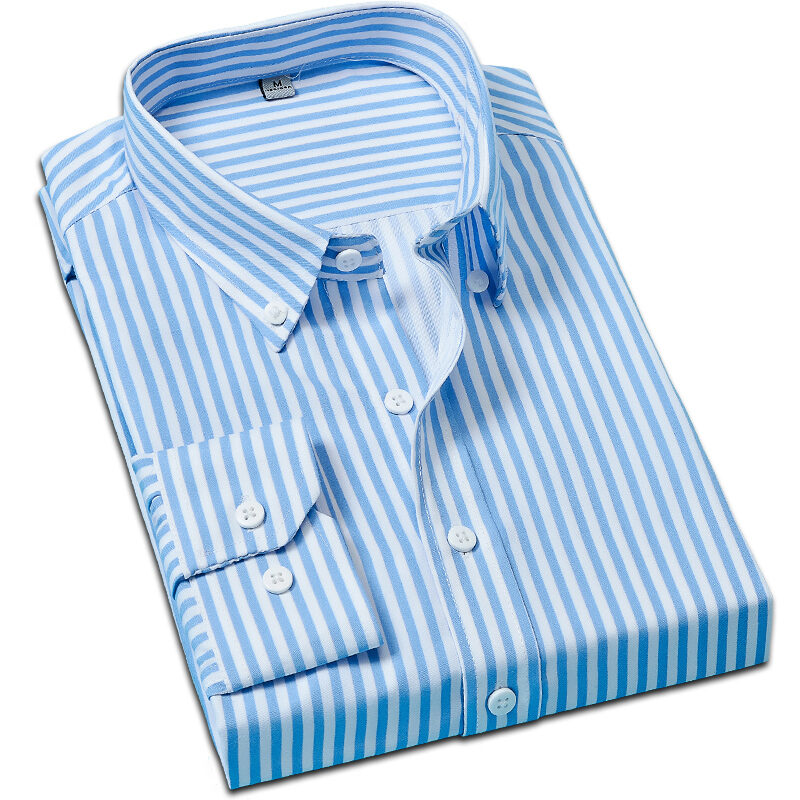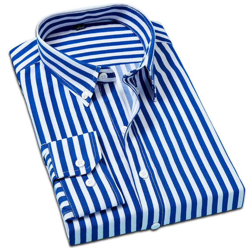 Spring and Autumn Men's Long-Sleeved Striped Shirt Business Casual Professional Workwear Shirt Slim Men's Shirt Inch Clothes