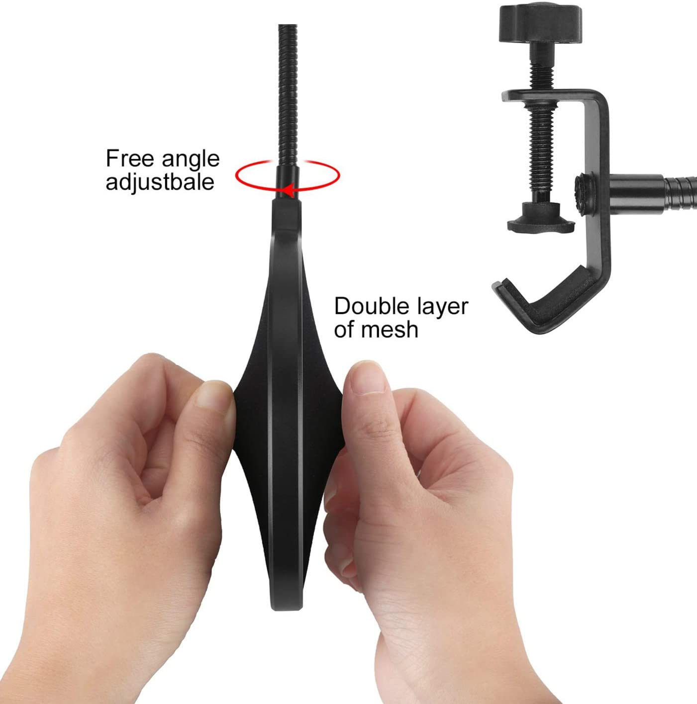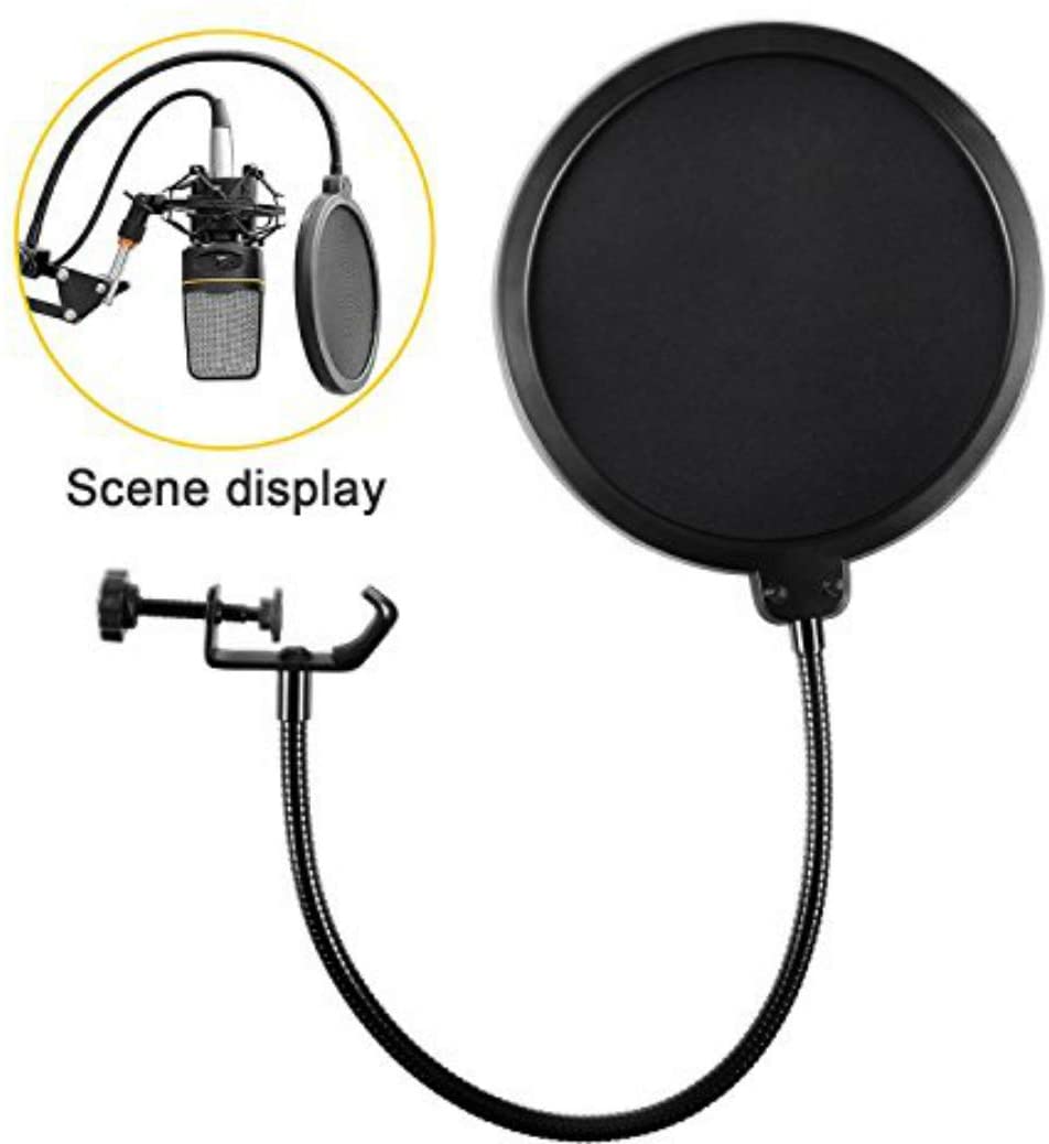Microphone Pop Filter For Blue Yeti and Any Other Microphone Dual Layered Wind Pop Screen With Flexible 360° Gooseneck Clip Stabilizing Arm By Earamble