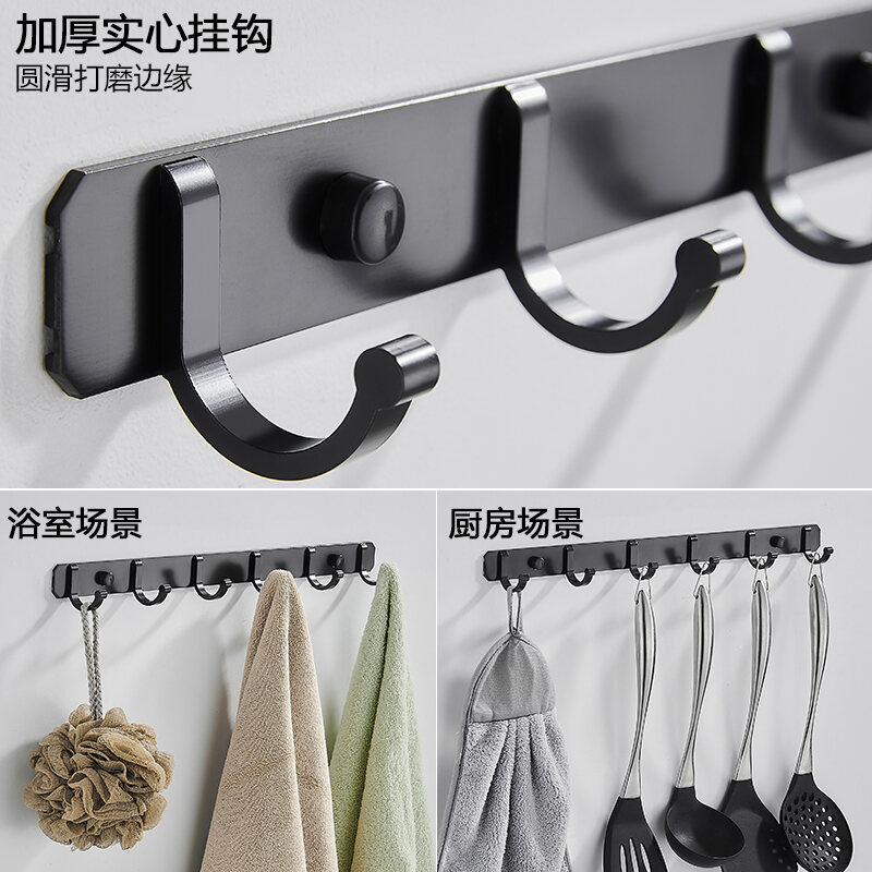 Dulcii 1PCS No Drilling Space Aluminium Kitchen Hooks Rack Multifunction Wall Mount Kitchen Shelf Utensil Holder With Hooks Mug Storage Kitchen Tools Holder Wall Mounted Kitchen Organizer