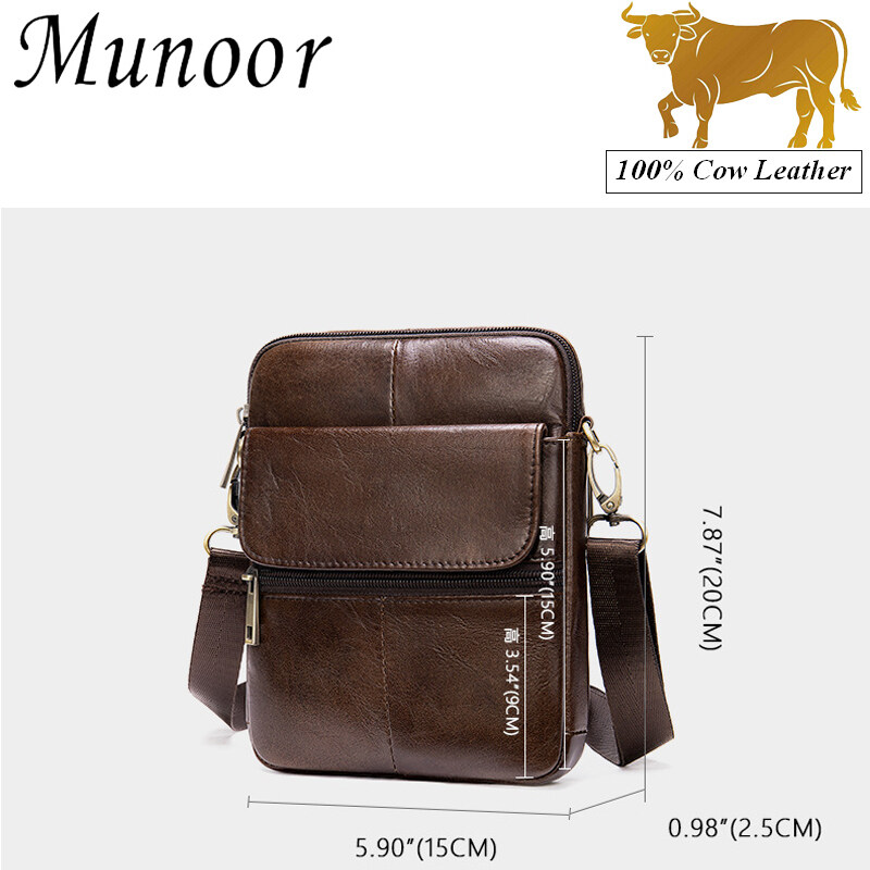 Munoor Original 100% Genuine Cow Leather Messenger Bag Men Cross body Bag Side Bag for Men Shoulder Bag Men sling bag men beg lelaki silang