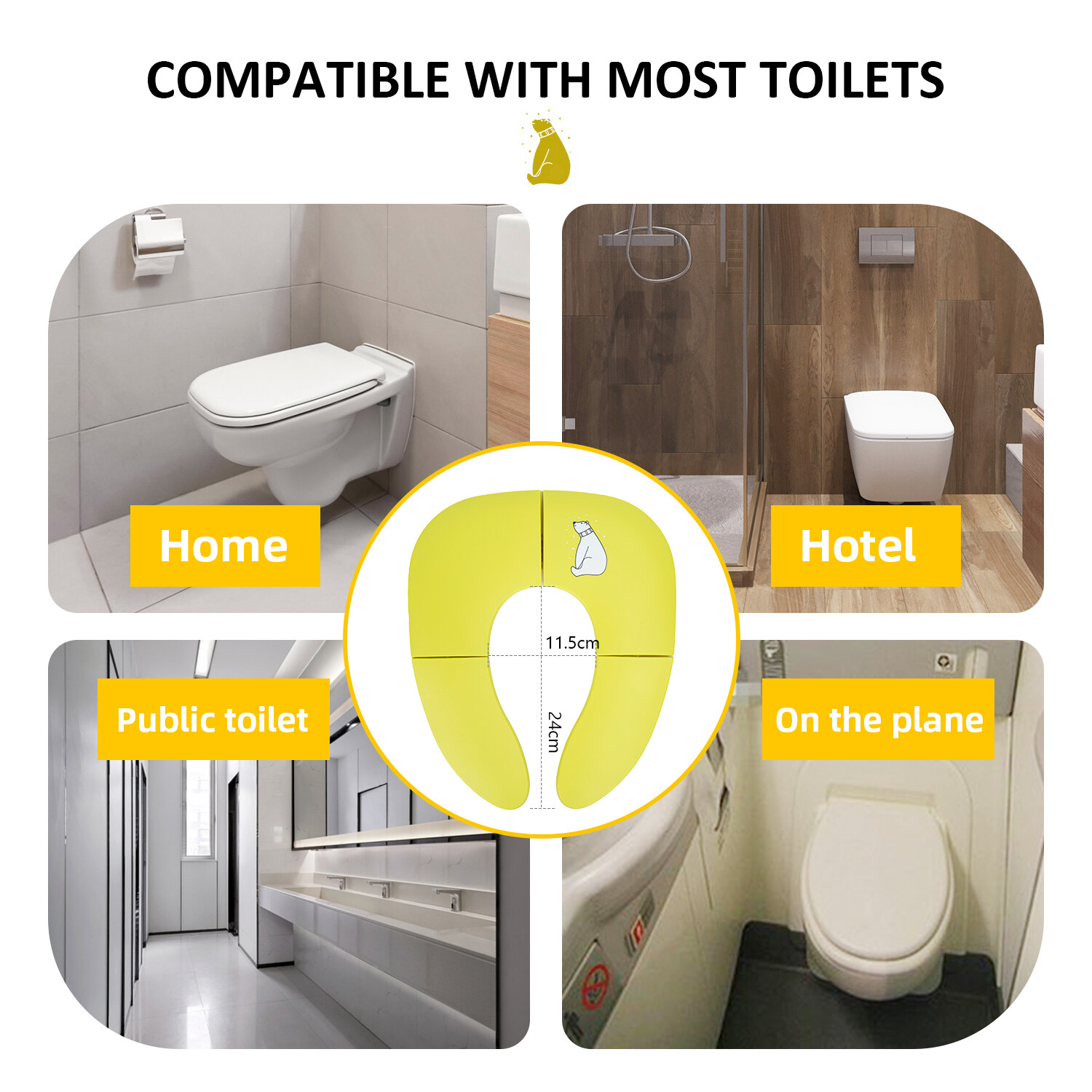 Orzbow Folding Travel Toilet Seat fits most standard and public toilets securely.