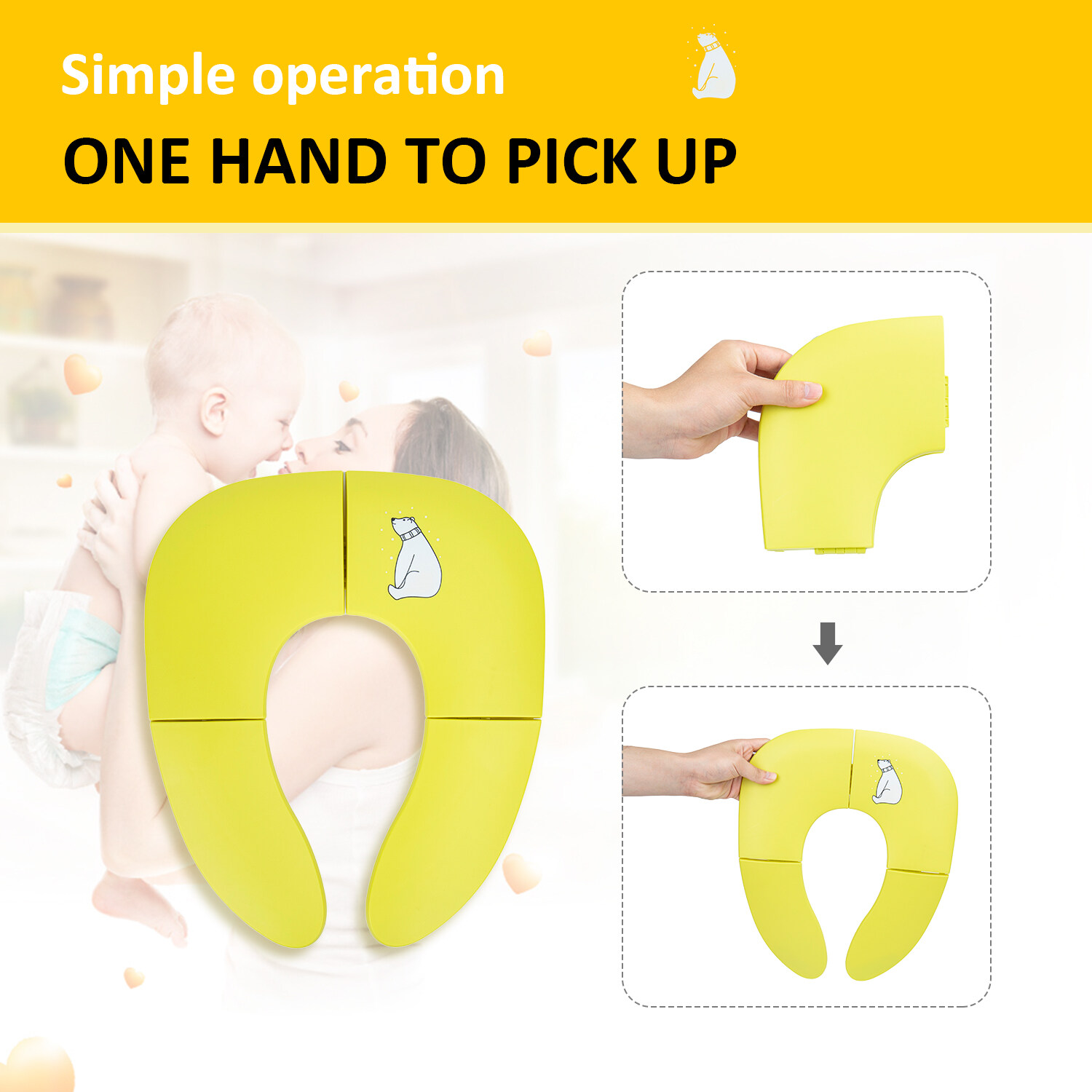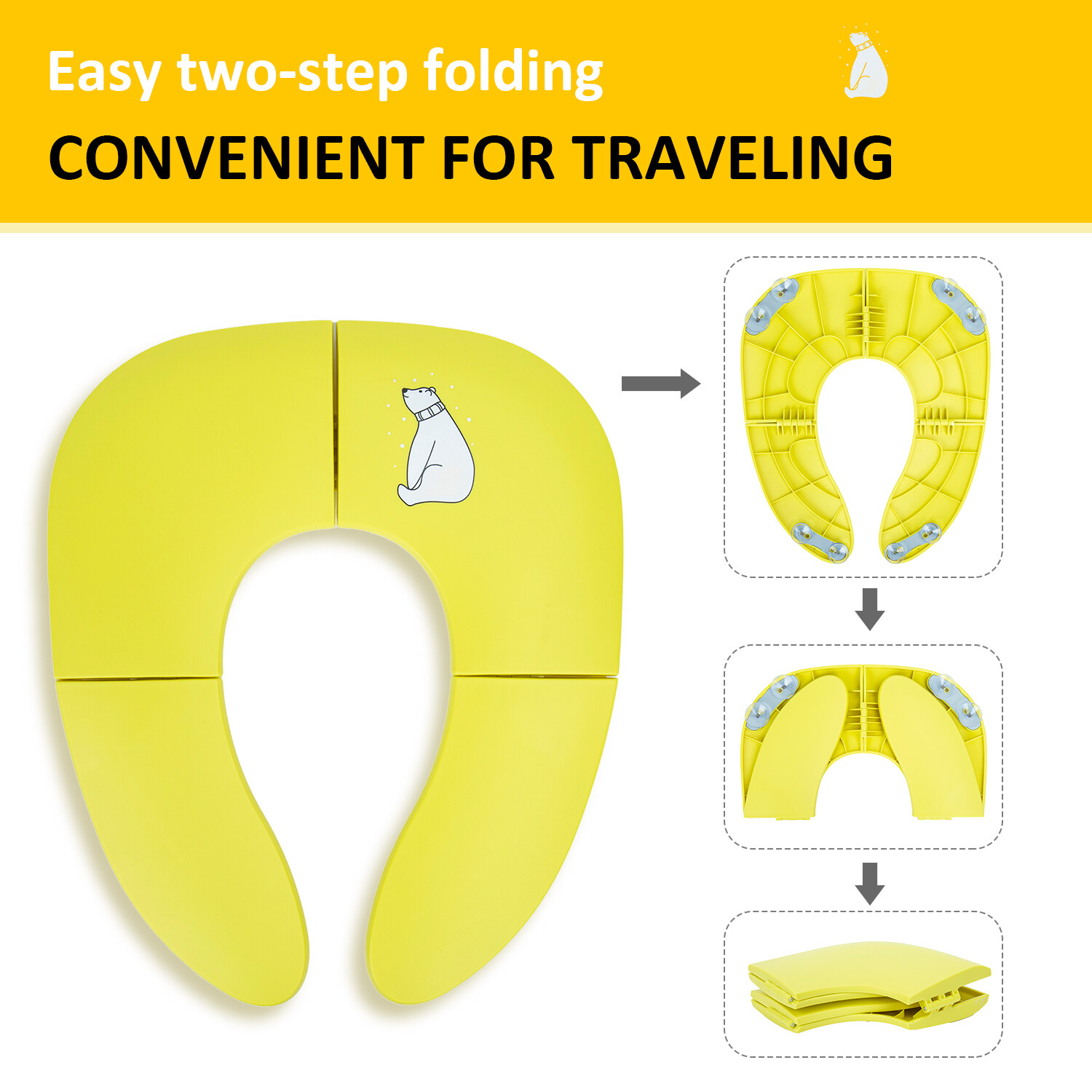 Freely switch Foldable To Unfoldable Design - Toilet Seat cover Folds up pretty small size of 7.2''L x 5.9''W x 2.8''H to bring to public restrooms easily and perfect for your children's away-from-home bathroom's needs and compact for "on the go" and traveling;