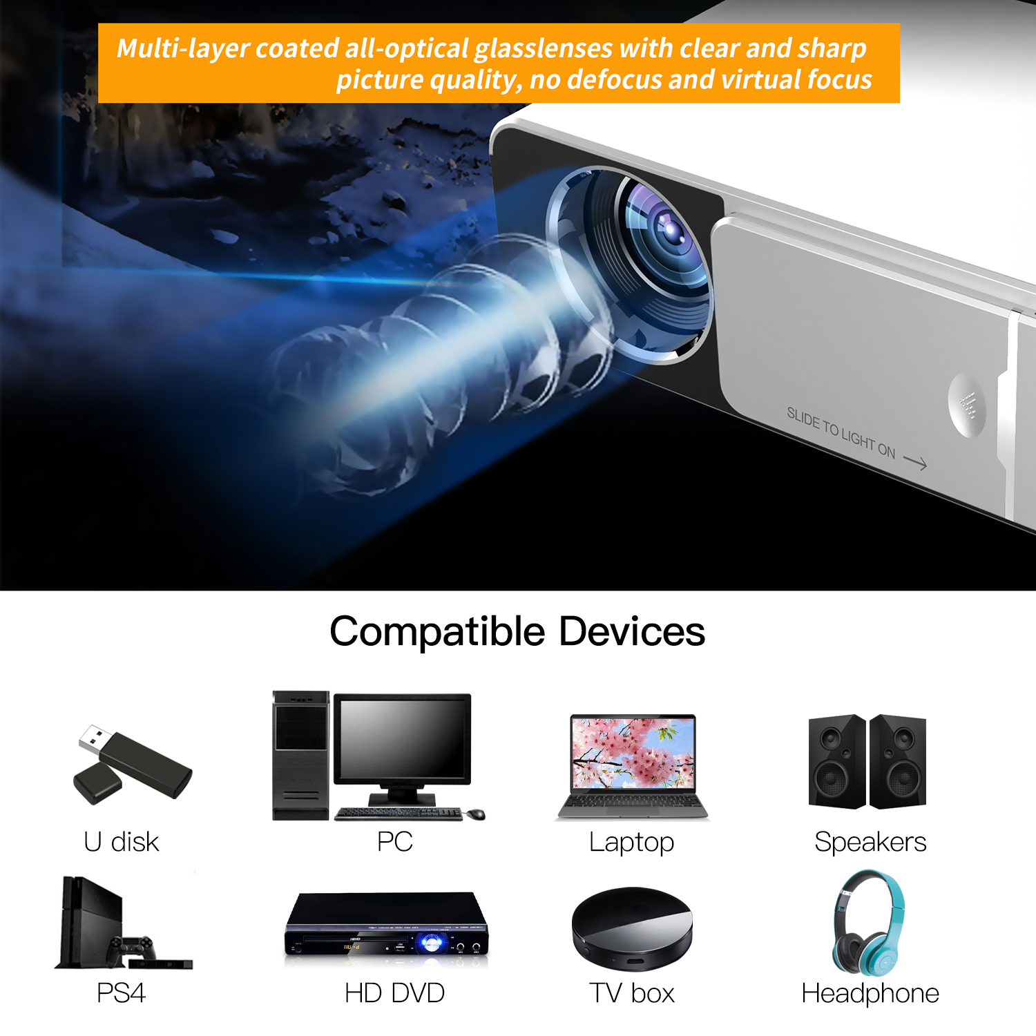 【Full HD 1080P】Mirval P1 Native 1080P Full HD 4K Projector Portable Beamer 8500 Lumens Auto Keystone Home Cinema Classroom Office