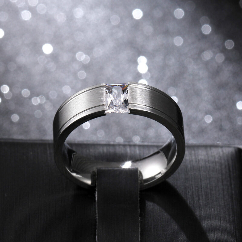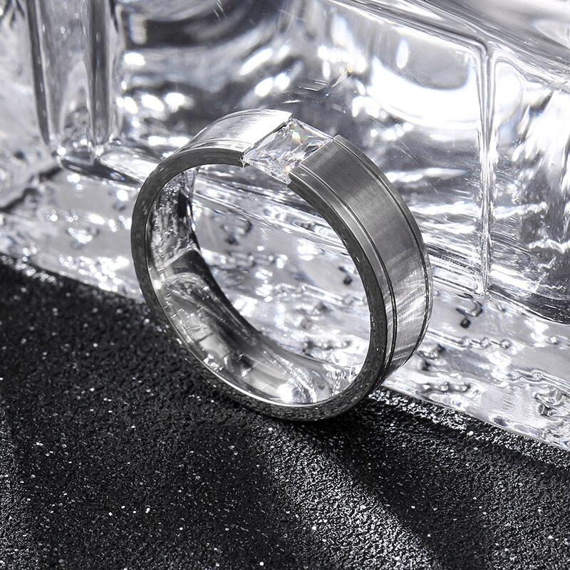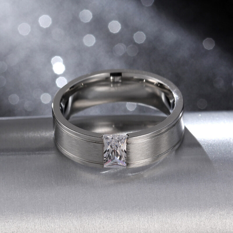 AVECON 【Support Engrave】AVECON 6mm Men's Diamond Titanium Silver Ring Size 6-12