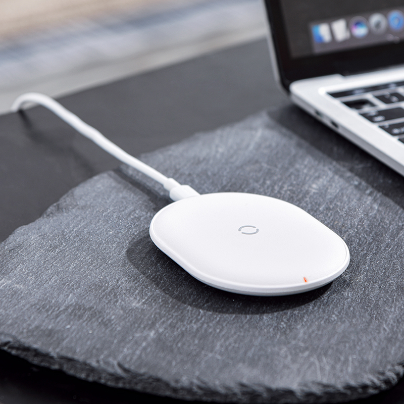 Product: Baseus Cobble Wireless Charger 15WMaterial: PC+SiliconeInput current: DC 5V/2A 9V/2A 12V/2A Max1m Type-C cable*1Features: Qi EPP Certification, 15W Wireless ChargerWireless Charger for Pods Pods ProTexture of Raw Gemstone Simple and beautiful, soft and delicate texture as the raw gemstone, stylish charging for you.15W Wireless Quick Charging: Support 15W wireless charging, charging starts immediately once placedQi EPP Certification: Conforming to Qi standard wireless charging protocol, compatible with mainstream models, safe charging without damaging device.Slim Design Slim and exquisite, it is convenient to carry for trip when you put it in the pocket or bag.Intelligent Charging Protection: Built-in intelligent chip with multiple protections such as overheating, overvoltage, overcurrent, short circuit, etc. for safe charging.Product size: 100.8mm*75.5mm*12.5mmProduct weight: 130.3g (excluding packaging)Color Family: Black / White- KINDLY USES QUALCOMM 3.0 ADAPTER WITH POWER OF 9V/2A(18W)FOR FAST CHARGING