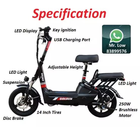 Brand new electric scooter for sale. Comes with dual seats design. User friendly design with USB port which is very convenience travel to work, sending child to school. Specification:-