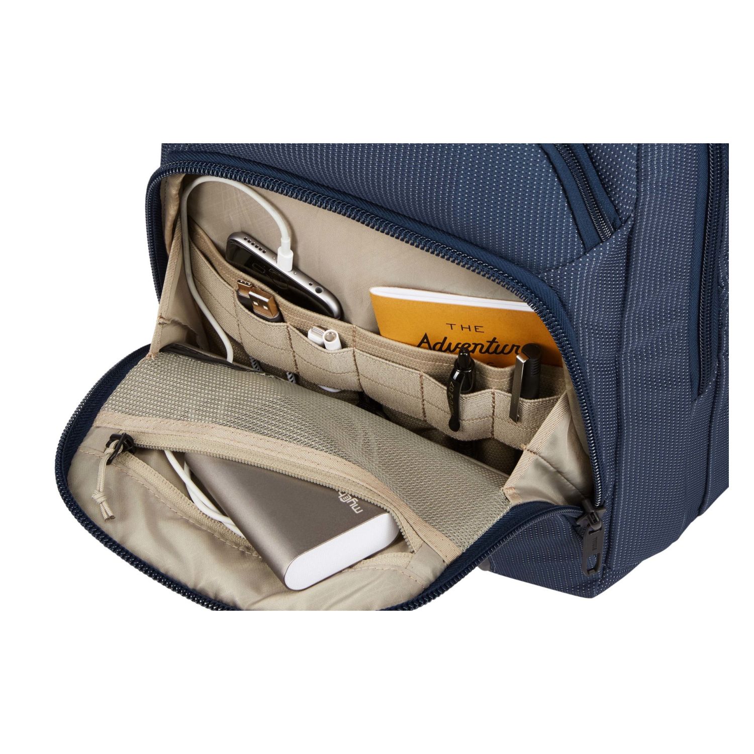 • Organize small electronics and accessories in the front panel with slip pockets, elastic loops, a zippered mesh pocket and the PowerPocket cord management system for charging on the go