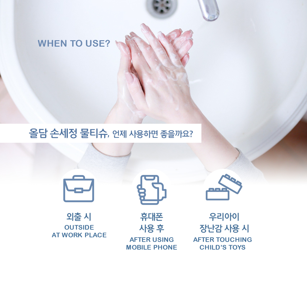 【Oldam Clean 올담】hand wipes | contains 60% ethanol kills 99.9% germs | Disinfecting antibacterial wipes | made in korea