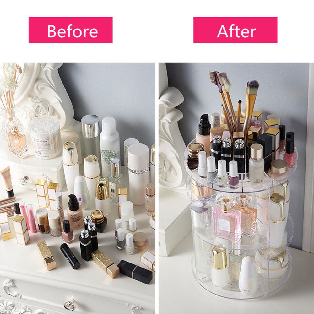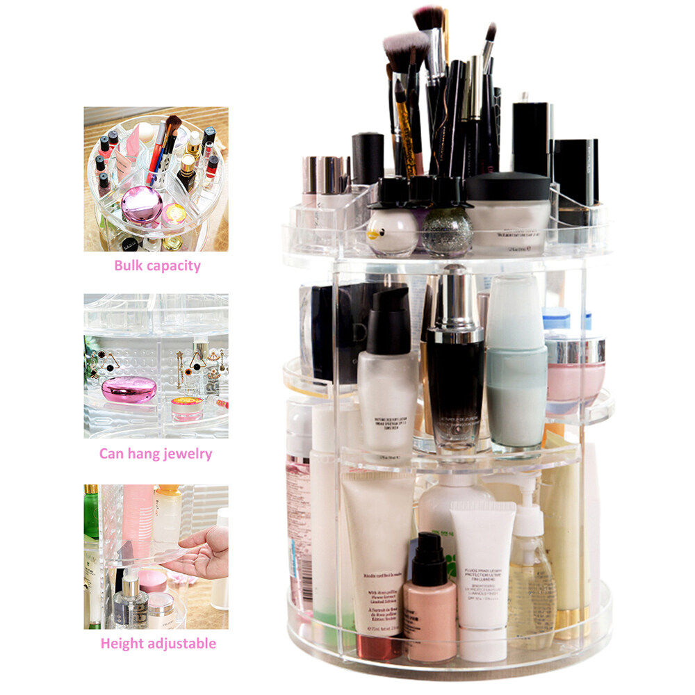 1. 360 Degree Rotation: Perfectly organizes and stores your cosmetics and accessories; easy access to all of your makeup products.
