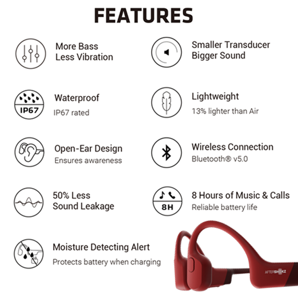 Shokz OpenRun (formerly AfterShokz Aeropex) WaterProof OPEN-EAR Bone Conduction Wireless Bluetooth Headset