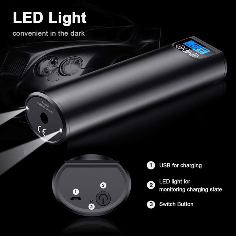 ●Night use: Built-in 2 LED lights that can be turned on automatically, and the display on the back makes the mini compressor easy to use even at night.