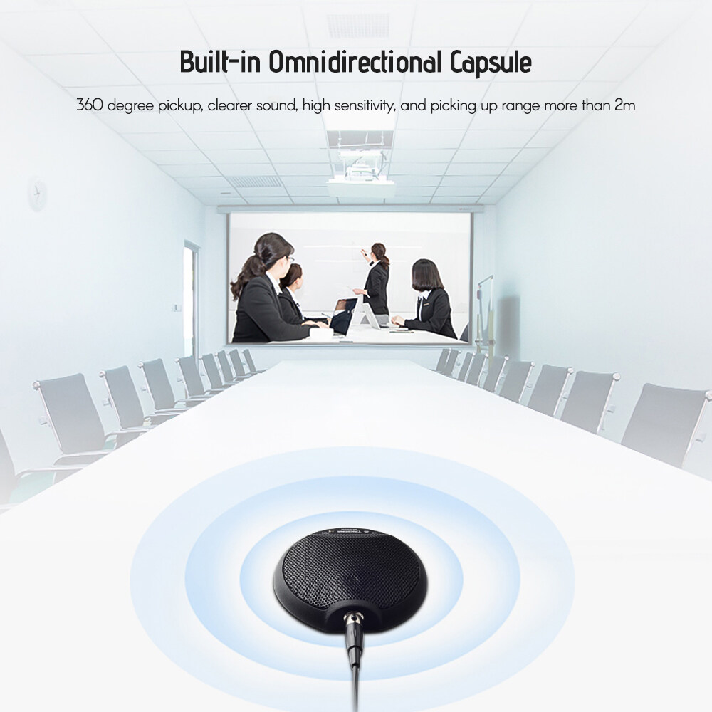 The digital boundary microphone tailored for network conference, network live broadcast, interview, etc. USB2.0 professional sound card chip without driver, plug and play, compatible with windows, iOS, Mac system.