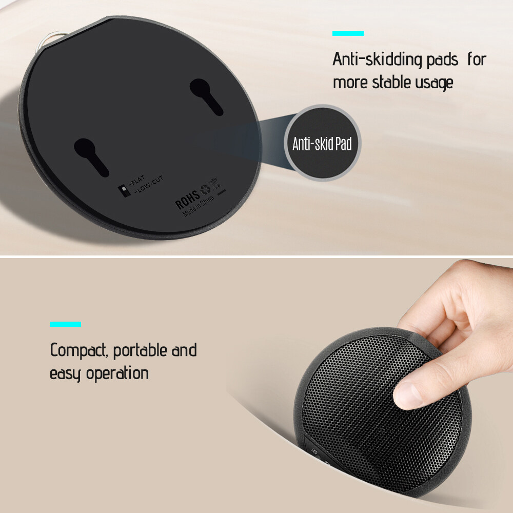 Anti-skidding pads prevents from microphone skidding or vibration on desktop; Touch mute switch eliminates mechanical noise of traditional switch.