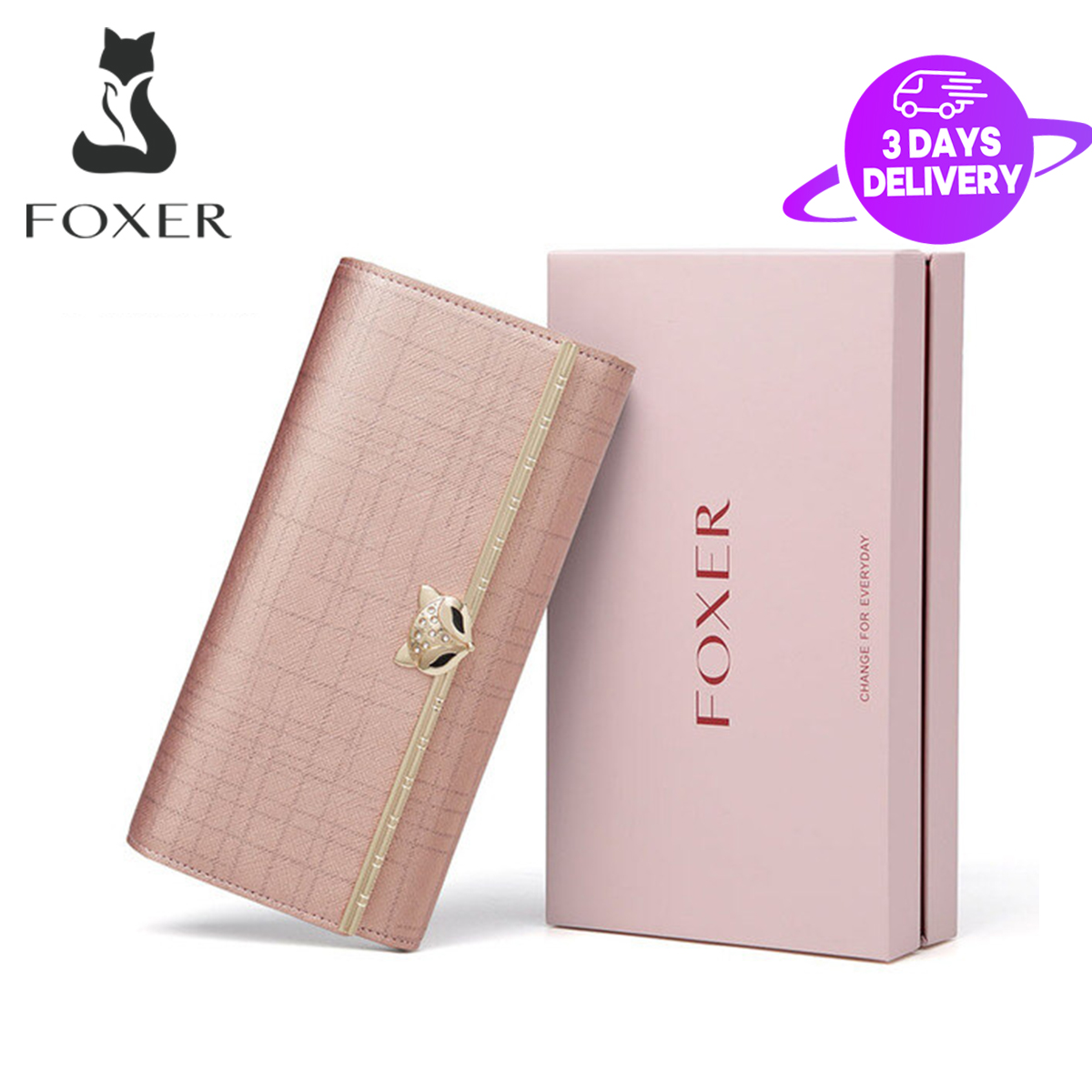 FOXER Brand Women's Split Leather Long Wallet Lady Luxury Clutch Bag Coin Bag Female Fashion Credit Card Holder for Women