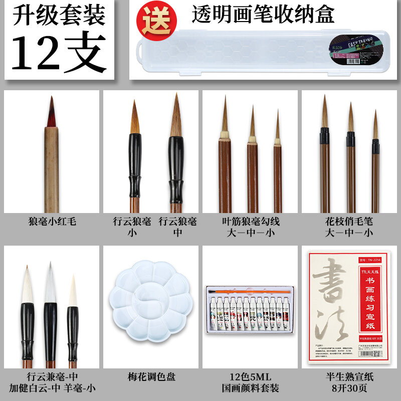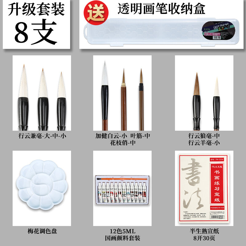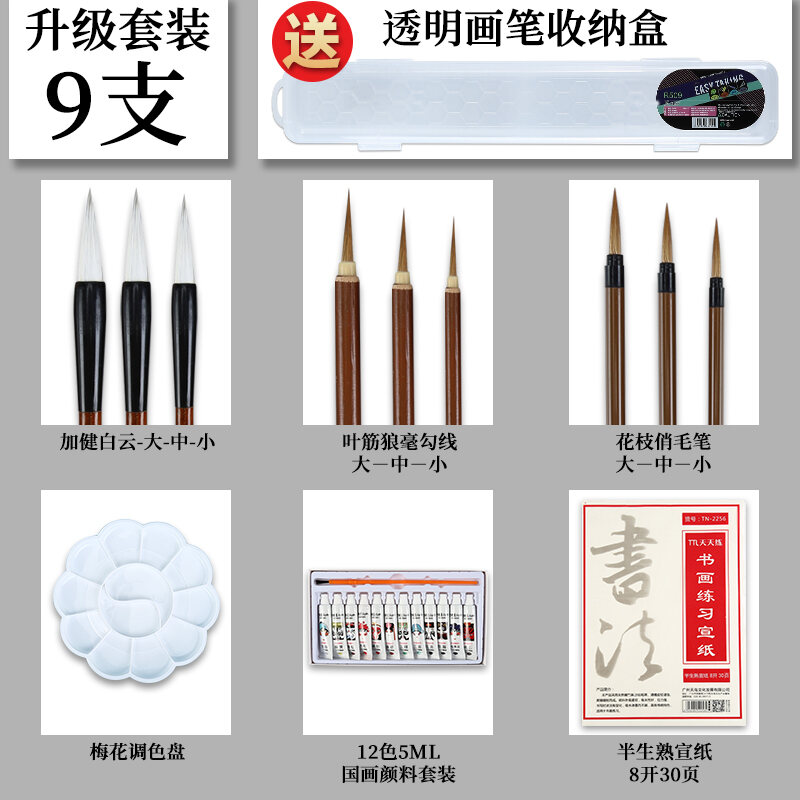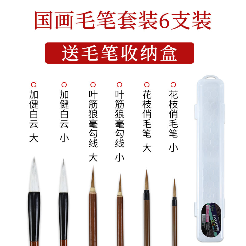 Chinese Painting Writing Brush Set Beginner's Full Set of Fine Brushwork Pen Chinese Landscape Freehand Painting Student Calligraphy Small Big White Clouds Painting Tools Professional Grade High-End W