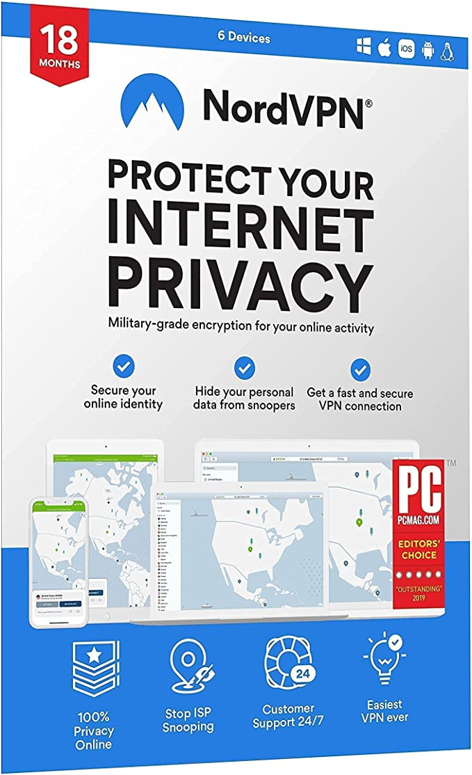NordVPN Standard - 2.5-Year VPN & Cybersecurity Software Subscription For 6 Devices - Block Malware, Malicious Links & Ads, Protect Personal Information [Physical box]