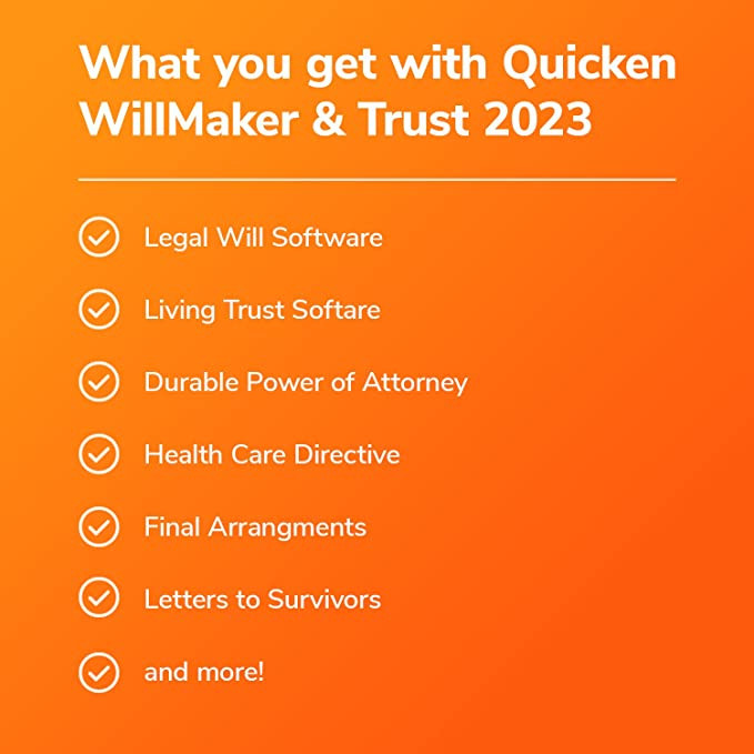 Quicken WillMaker and Trust Software 2023 - Estate Planning Software - Includes Will, Living Trust, Health Care Directive, Financial Power of Attorney – Secure - Legally Binding - [PC/Mac Download]
